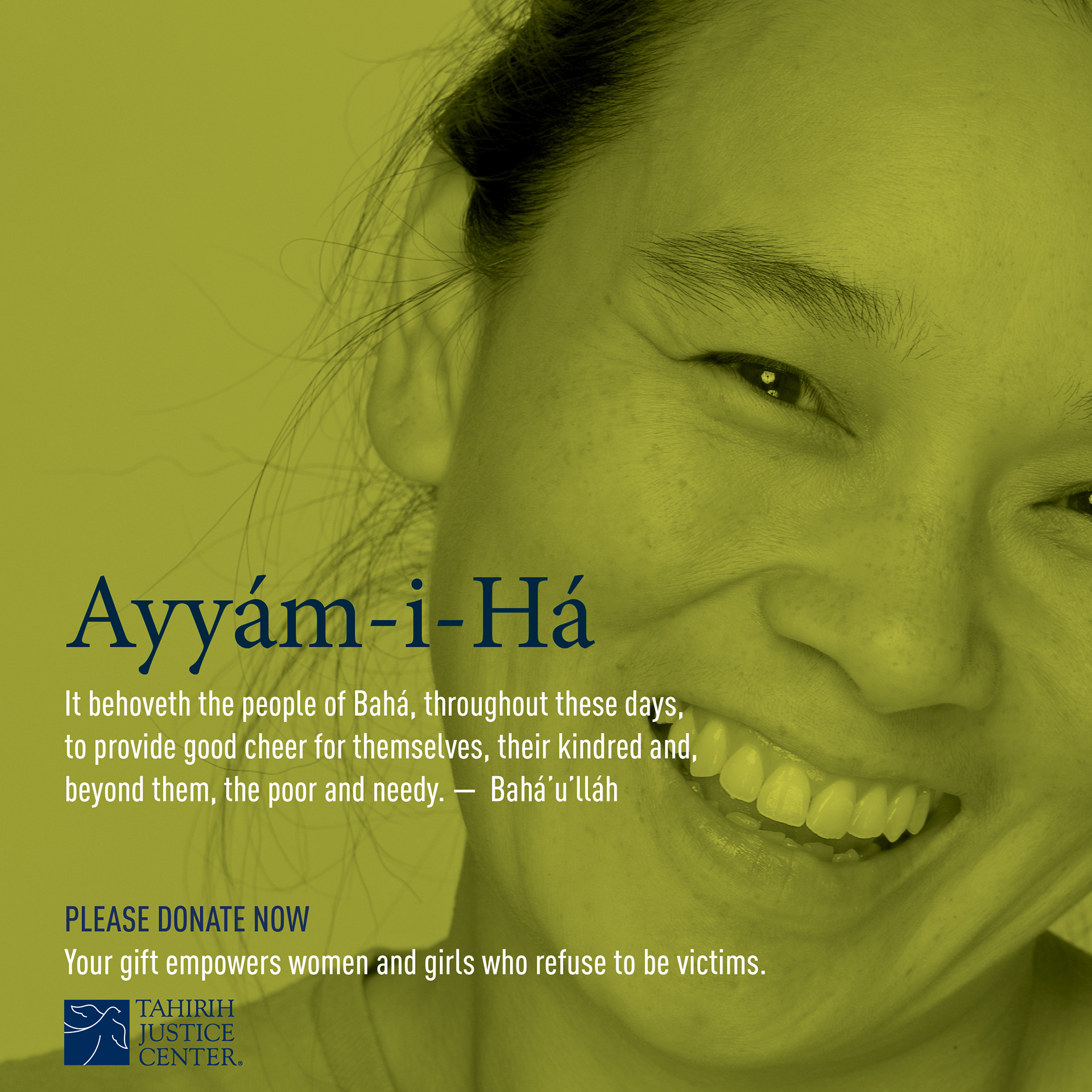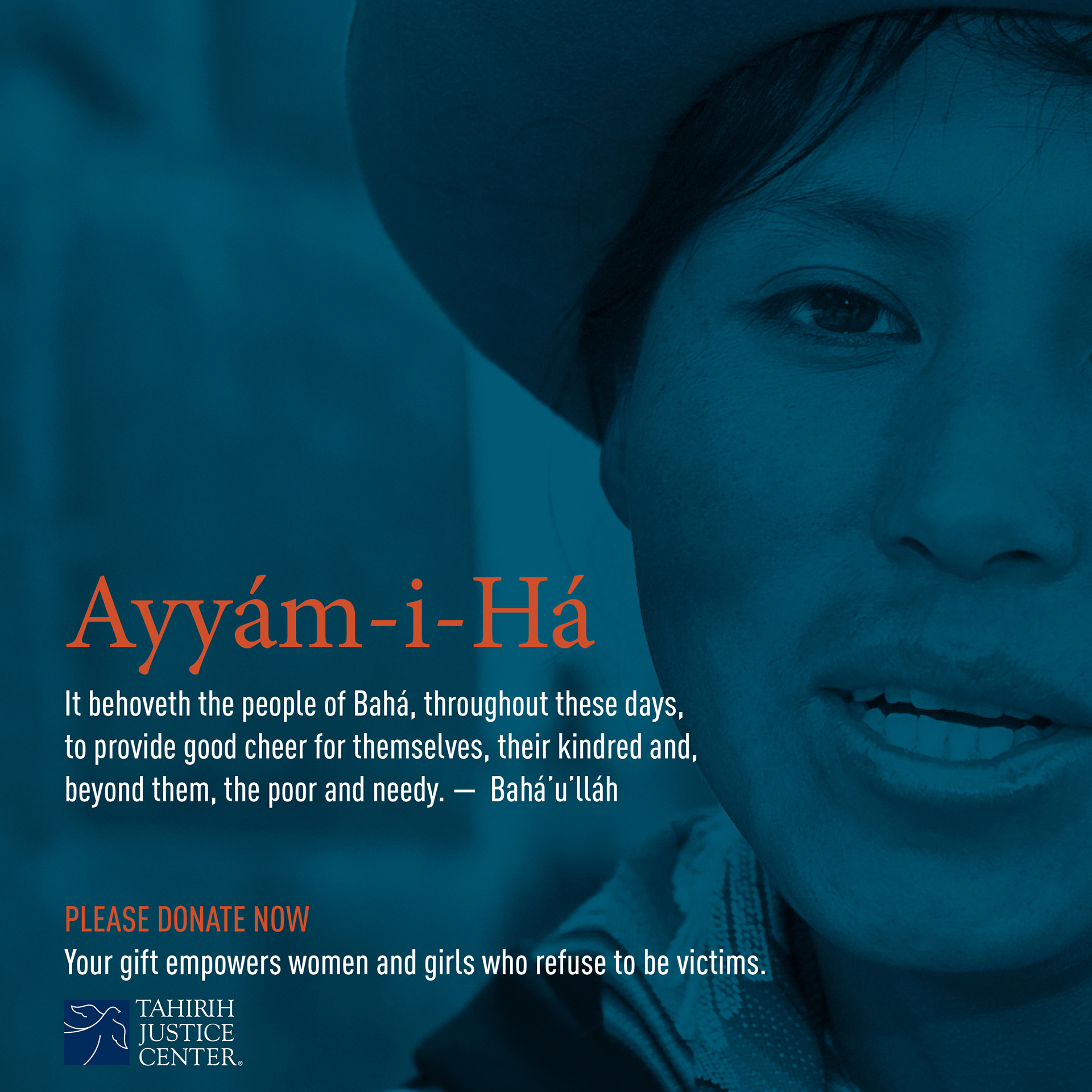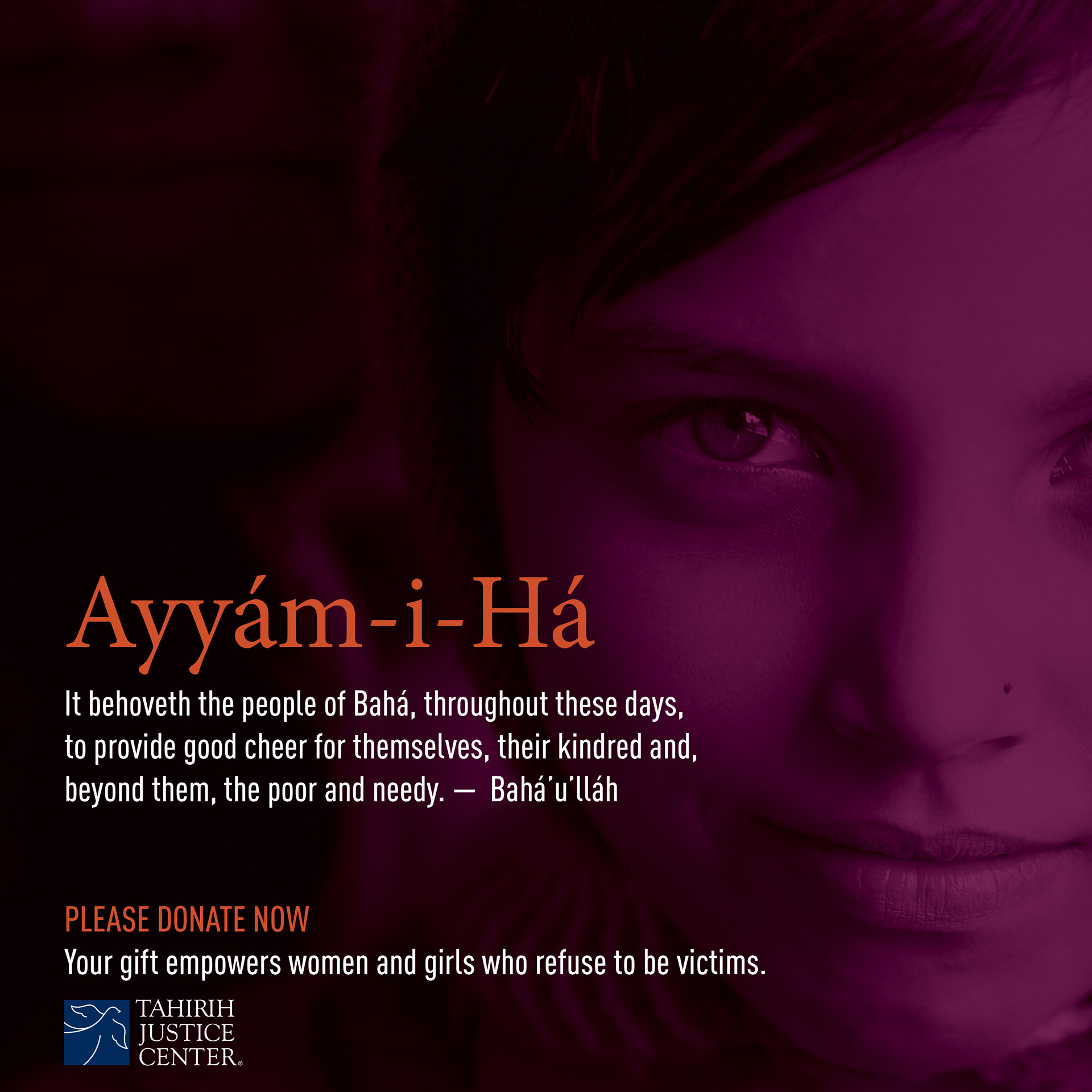 AD CAMPAIGN Fundraising campaign directed at a Baha'i demographic. Tahirih Justice Center is a national non-profit that has served nearly 19,000 courageous individuals fleeing violence since 1997.