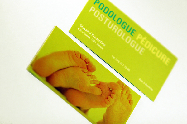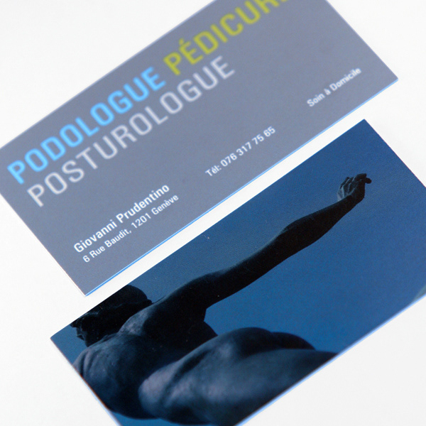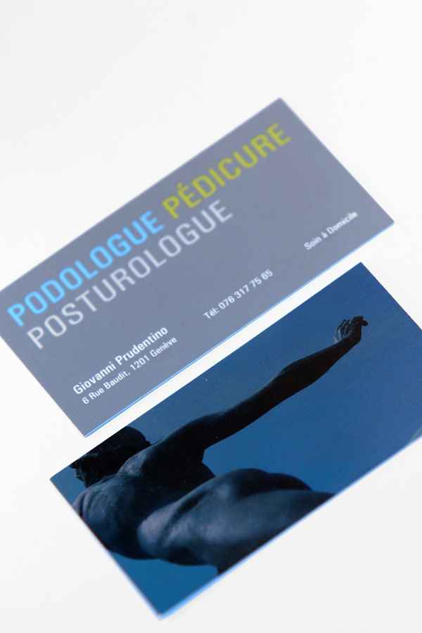 Set of 2 business cards designed for a Geneva, Switzerland-based podiatrist.