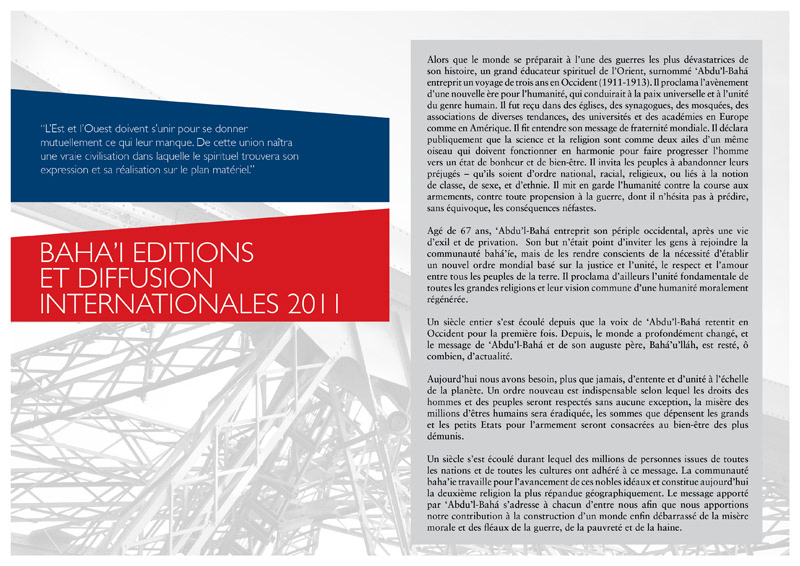 Design for the stand of Baha'i Editions at the 2011 Salon du Livre (Book Fair) in Geneva, Switzerland.