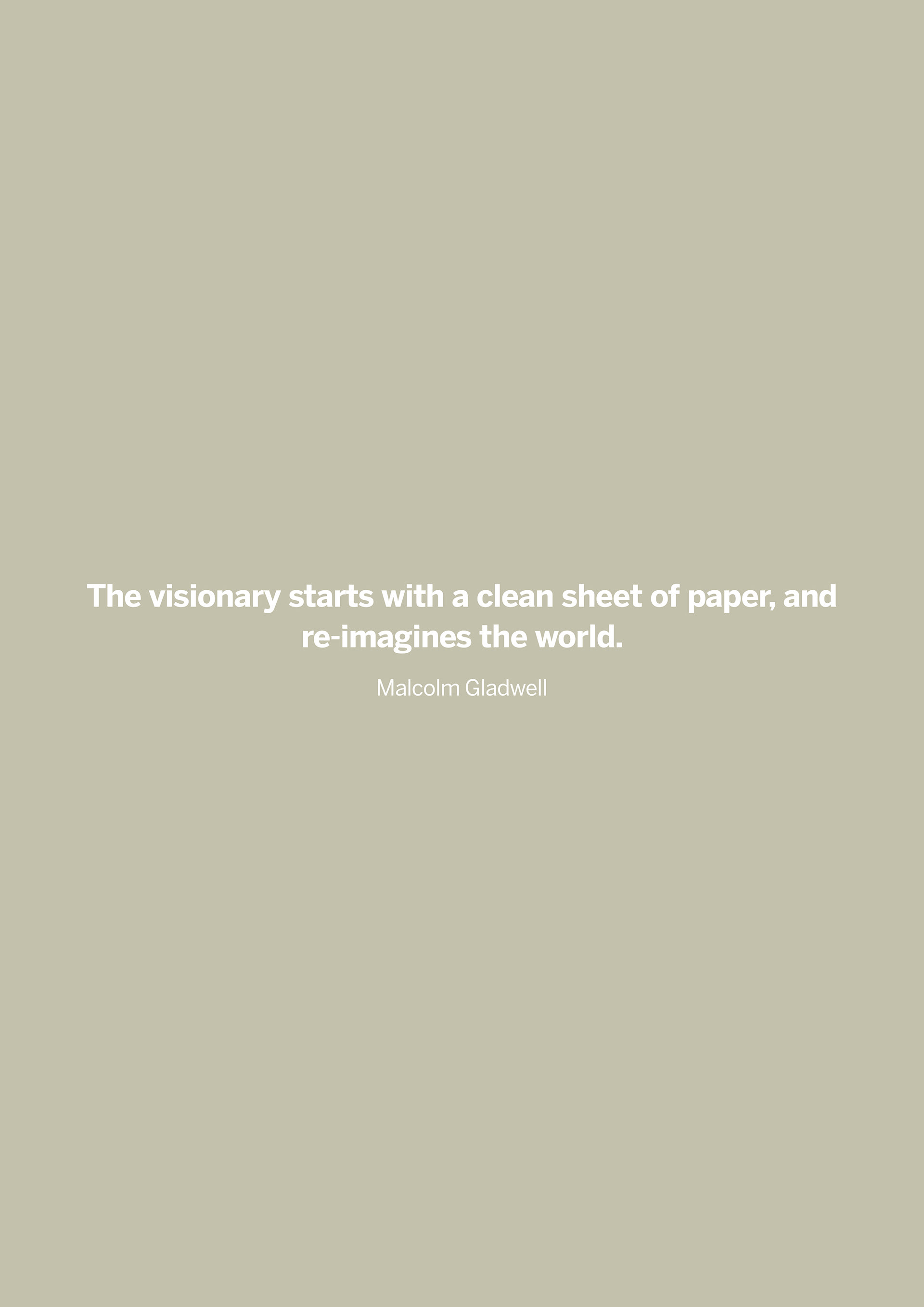 "The visionary starts with a clean sheet of paper, and re-imagines the world." — Malcolm Gladwell