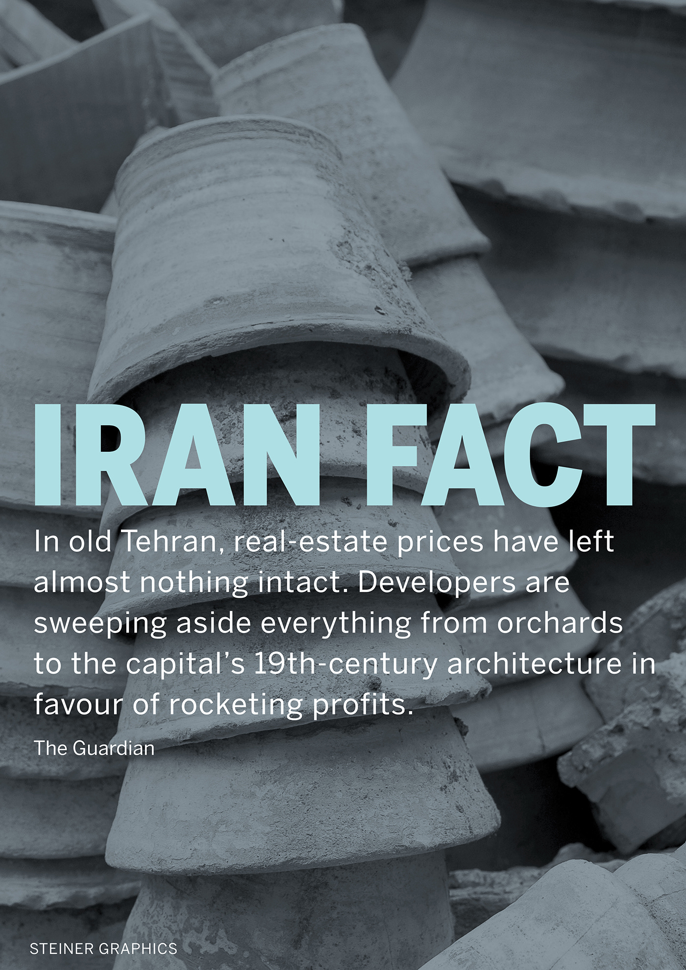 A series of posters highlighting salient facts related to human rights, the environment and culture in Iran.