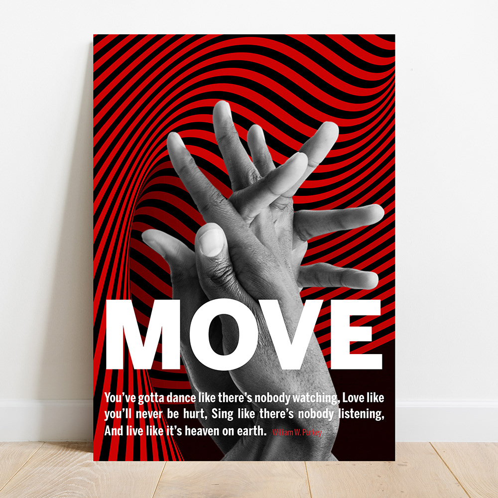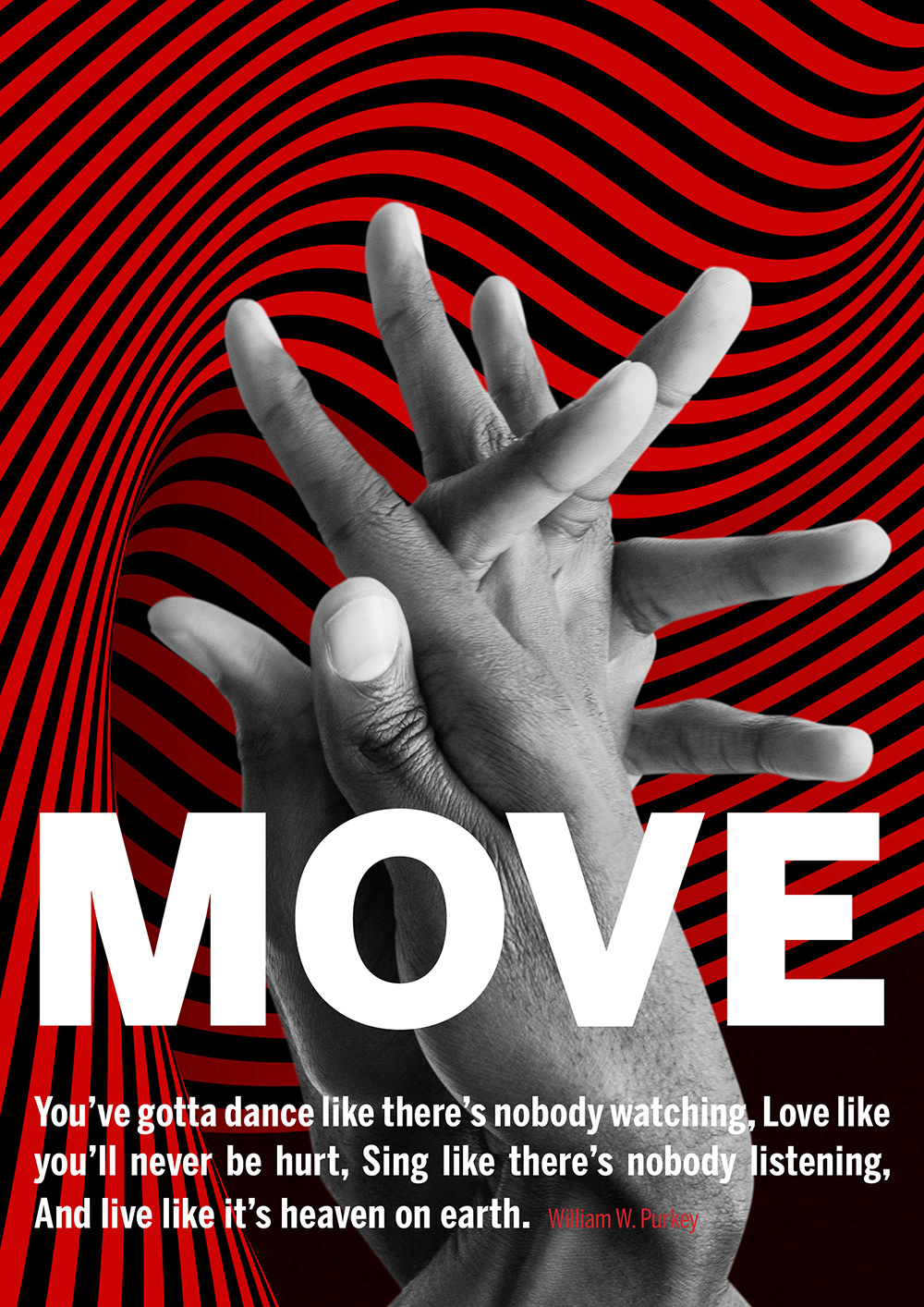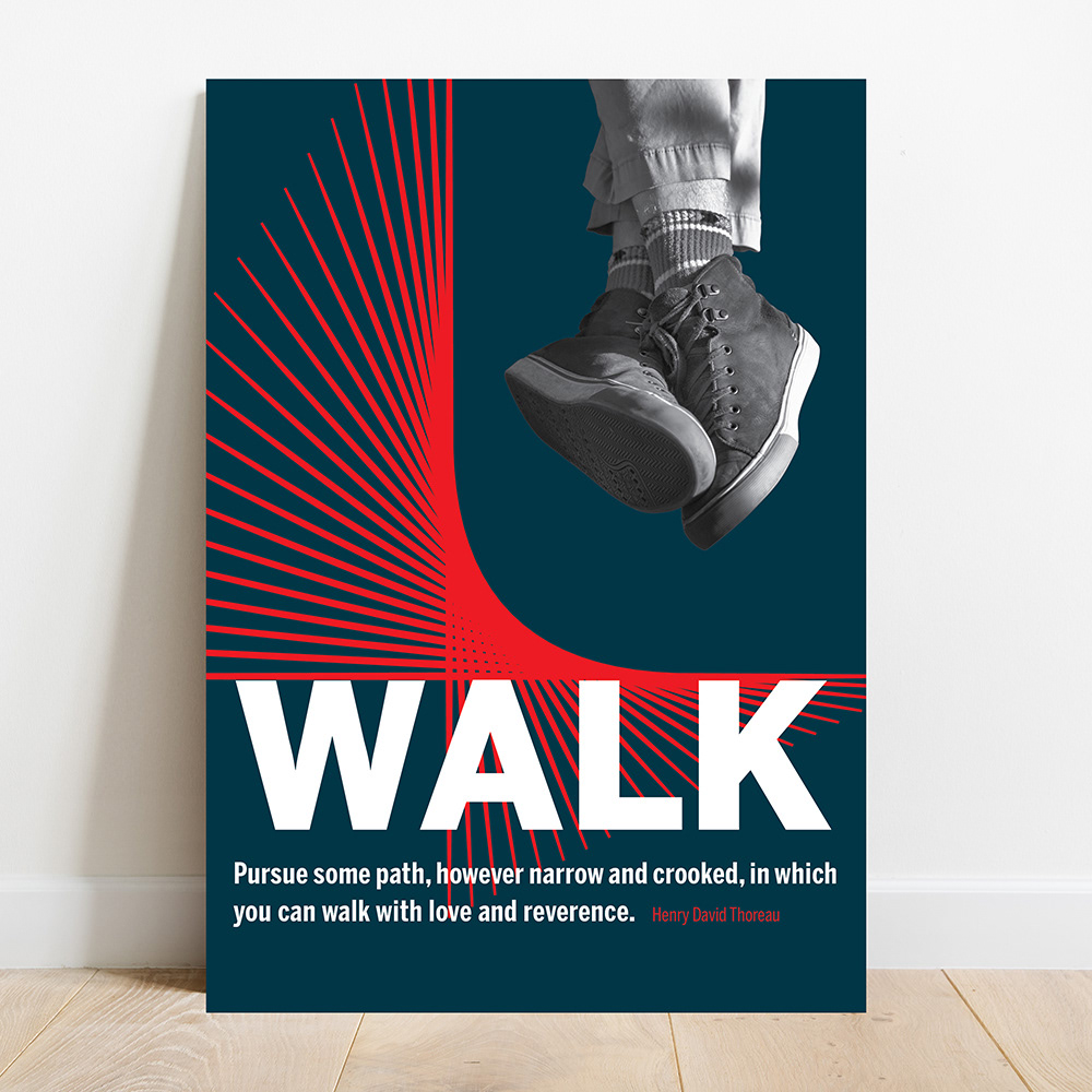 Playing on the theme of life being a four-letter word, the graphics explore themes about living using a series of active verbs.