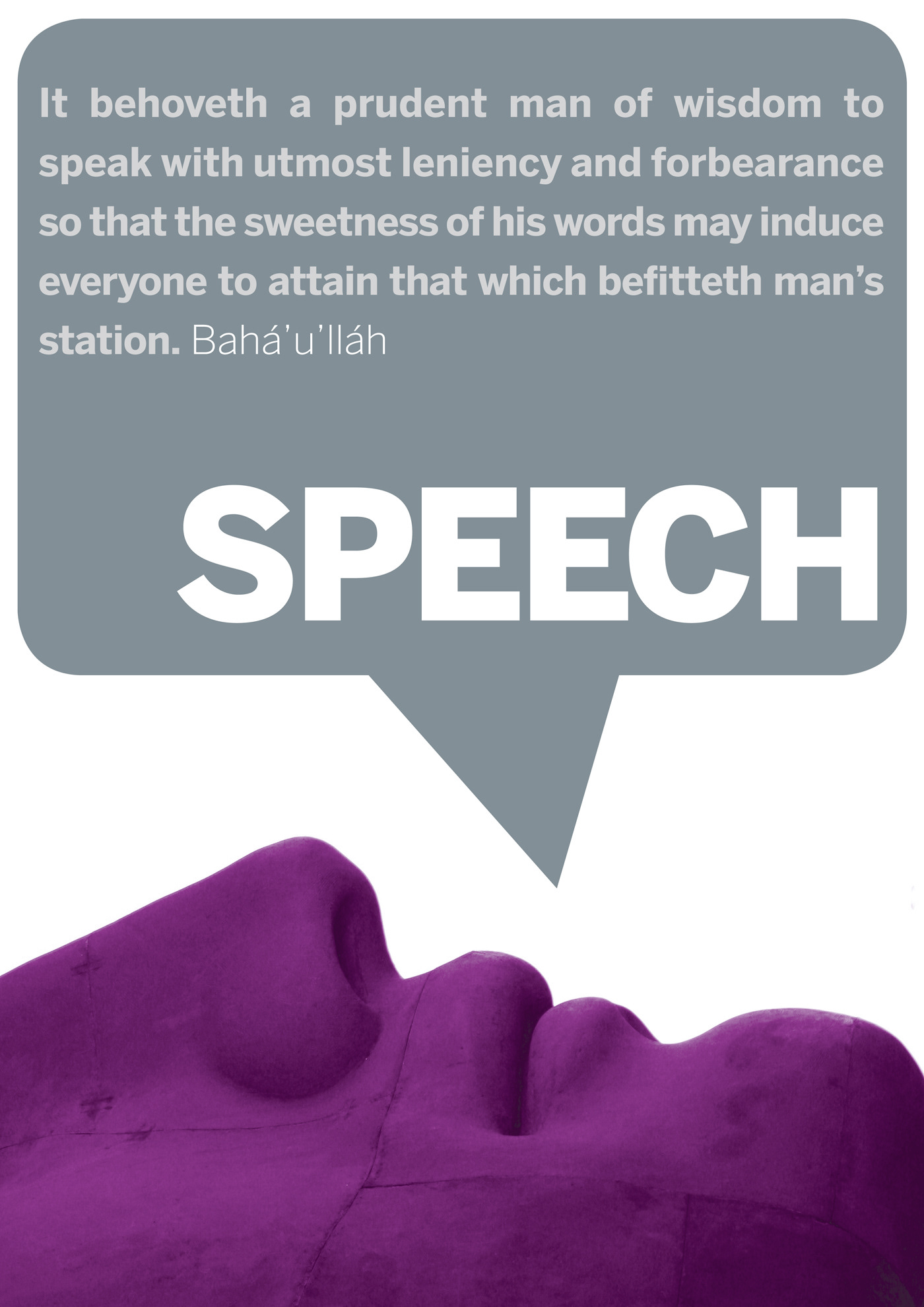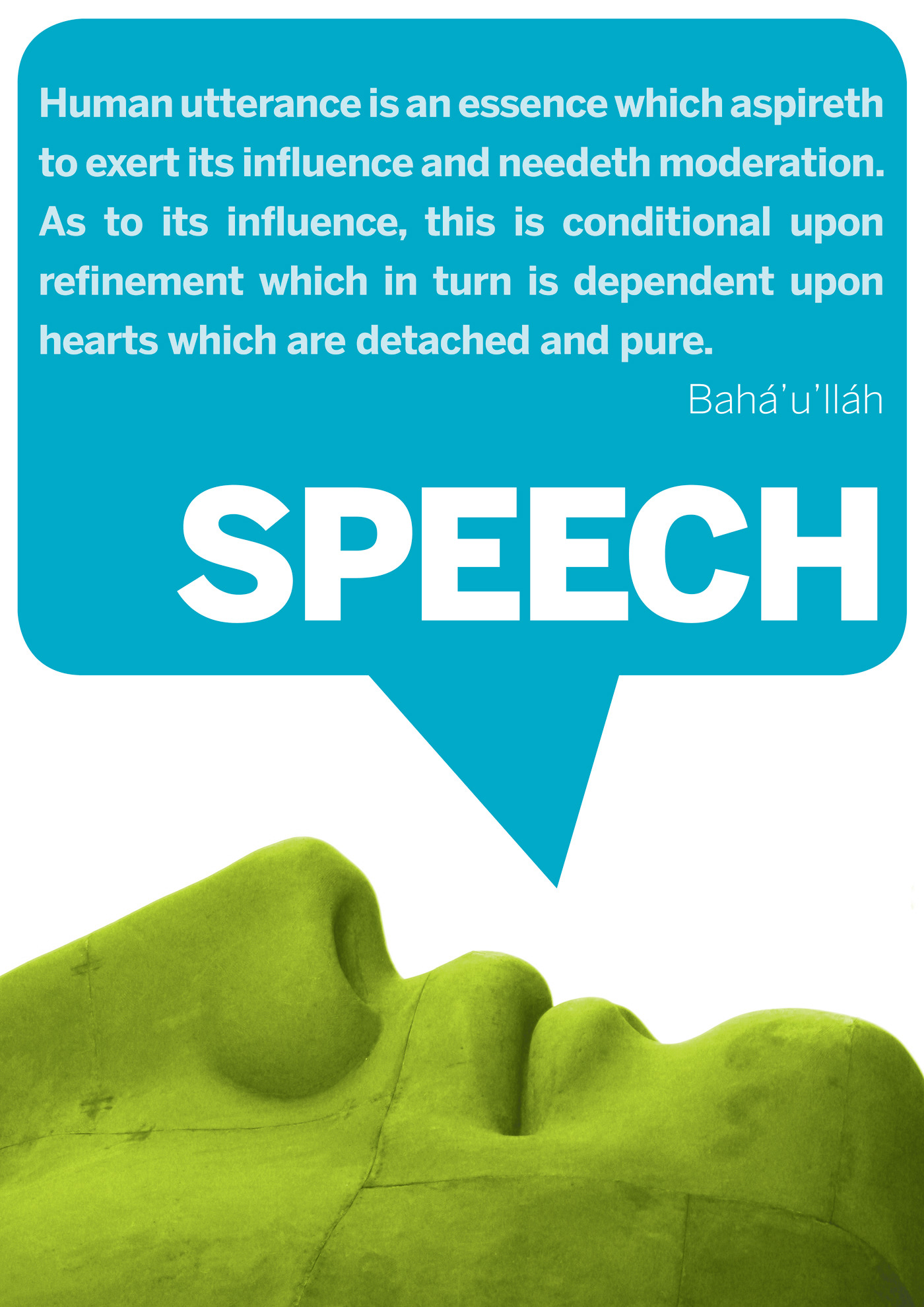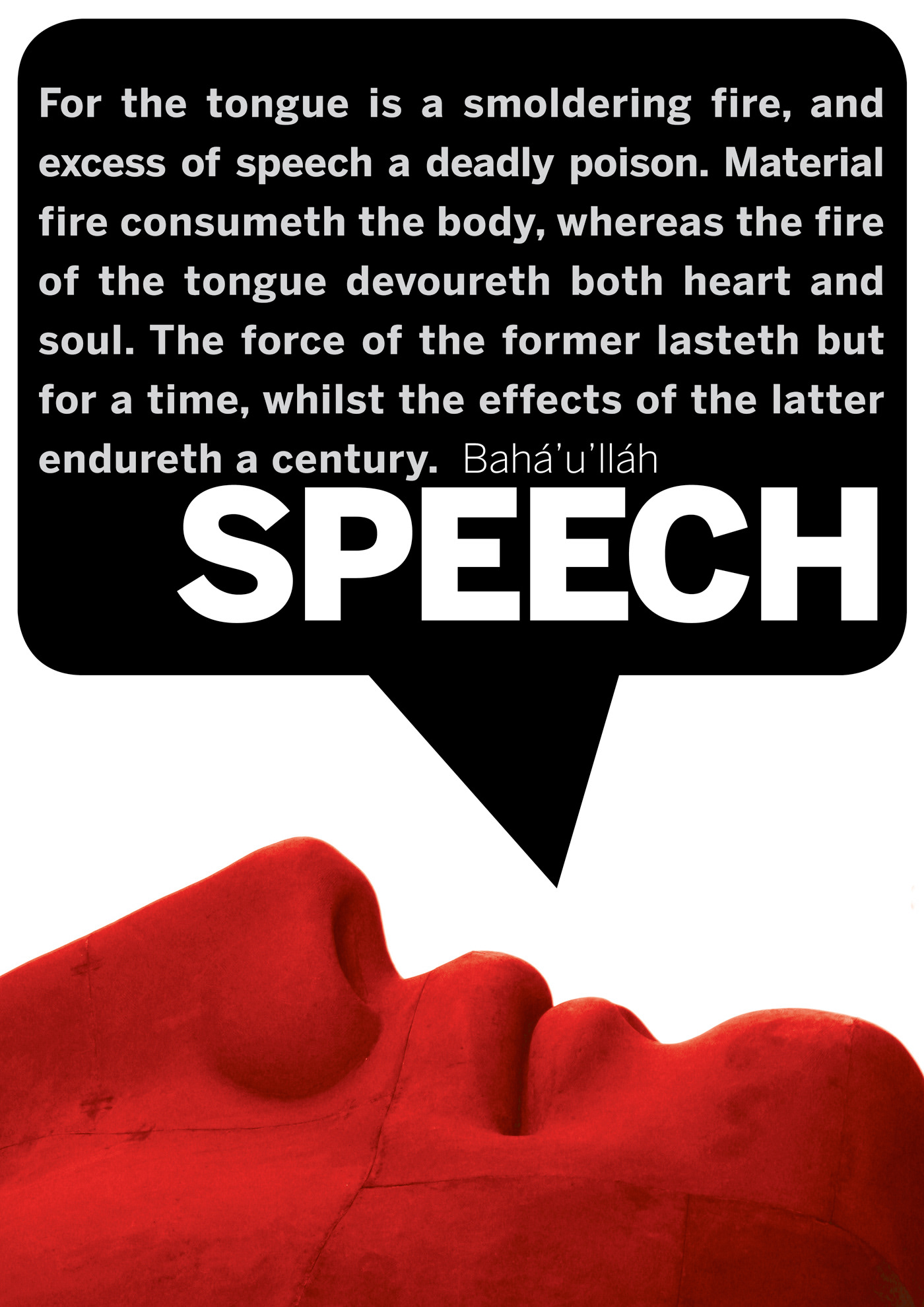 A series of posters highlighting quotations from the writings of Baha'u'llah on the power of speech.